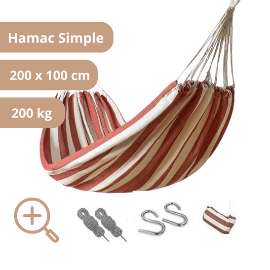 Hamac Simple 200 x 100 - Rouge et Blanc