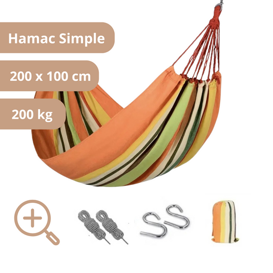 Hamac Simple 200 x 100 - Rayures Orange et Vert